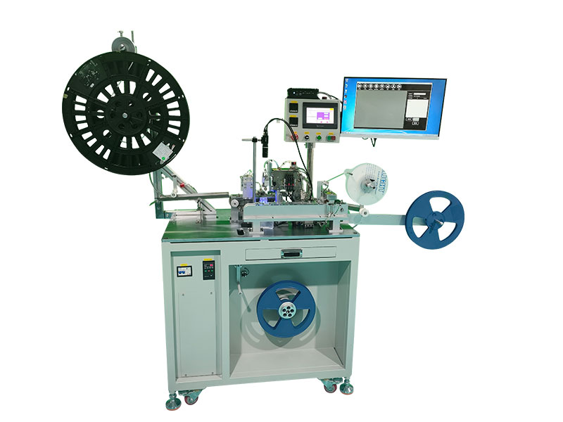 Tray to Tray Automatic Taping Machine TTT-100 The equipment features a dual robotic arm handling structure, with automatic loading from the tray. After calculating the row and column spacing using PLC, the robotic arm picks up the components. After undergoing image inspection, defective components are discarded, while the acceptable components are placed into a new tray and arranged. It is suitable for batch processing of ICs, modules, hardware components, and other materials, and it can perform functions such as tray arrangement and inspection.